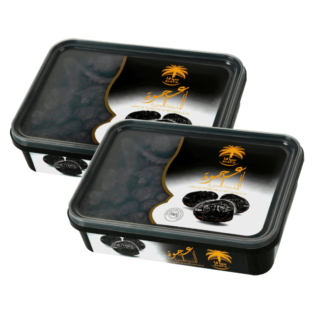 Ajwa Al Madinah – Saudi Arabia – 2 x 800g. Premium unpitted Ajwa dates from Madinah. Rich in nutrients, naturally sweet, and packed for lasting freshness. A wholesome choice for daily nourishment and special occasions. Key Features: -High-quality unpitted Ajwa dates, naturally rich in fiber and antioxidants for digestive and immune health. -Packed with essential nutrients including potassium, magnesium, and natural sugars for energy support. -Traditionally consumed for their spiritual significance and wellness-promoting properties. -Soft, chewy texture with a mildly sweet, earthy flavor unique to dates from Madinah. -Value pack of 2 x 800g for long-lasting freshness, perfect for families, gatherings, or Ramadan.