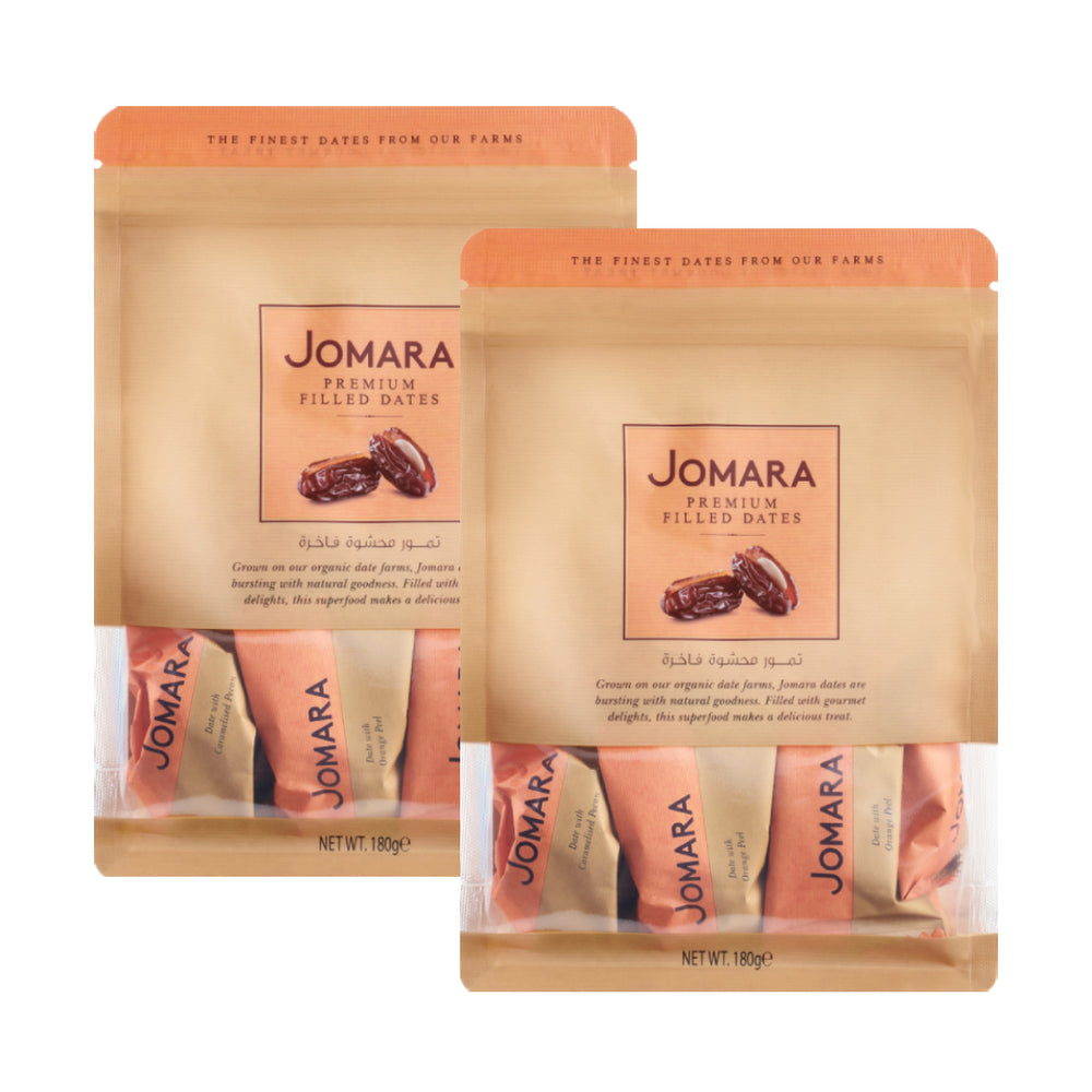 Jomara Assorted Filled Dates – Saudi Arabia – 2 x 180g. This value bundle offers a luxurious selection of premium Saudi Arabian dates, exquisitely filled with a variety of delicious nuts and confections. Double the delight, it is perfect for sharing, gifting, or extended enjoyment of a sophisticated treat. Key Features: -Premium Saudi dates: High-quality Saudi Arabian dates, renowned for rich flavor. -Exquisite, assorted fillings: Variety of gourmet filled date flavors with nuts and confections. -Value pack savings: Enjoy more for less with this 2 x 180g value pack, perfect for families or entertaining. -Natural energy & nutrients: Wholesome, sustained energy snack rich in essential minerals. -Ideal for sharing & gifting: Excellent choice for gourmet gifting or sharing with loved ones.