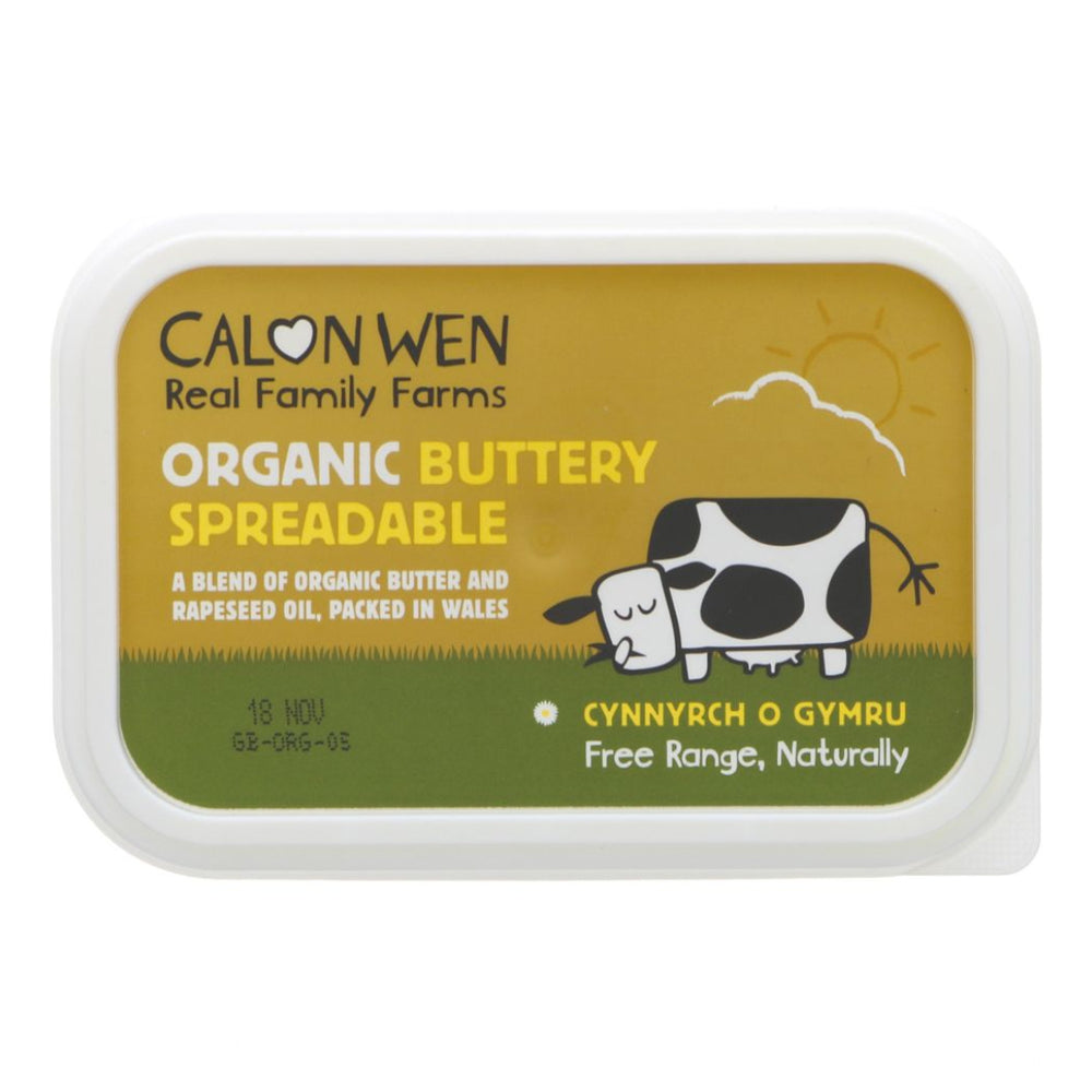 Calon Wen Organic Spreadable Butter - 250g Tub Enjoy the creamy, lightly salted taste of Calon Wen Organic Spreadable Butter, blended with organic rapeseed oil for a smooth texture that’s easy to spread straight from the fridge. Whether topping your toast or enhancing your sandwiches, this butter adds a luxurious, melt-in-your-mouth finish. Key Features: - Convenient Spreadability: Blended with organic rapeseed oil for easy spreading. - Lightly Salted: Adds a balanced, creamy flavor to your meals. - Versatile Use: Perfect for toast, sandwiches, and other dishes. - Premium Quality: Made from organic butter and rapeseed oil. - Fridge Ready: Remains spreadable directly from the fridge. Product origin: UK