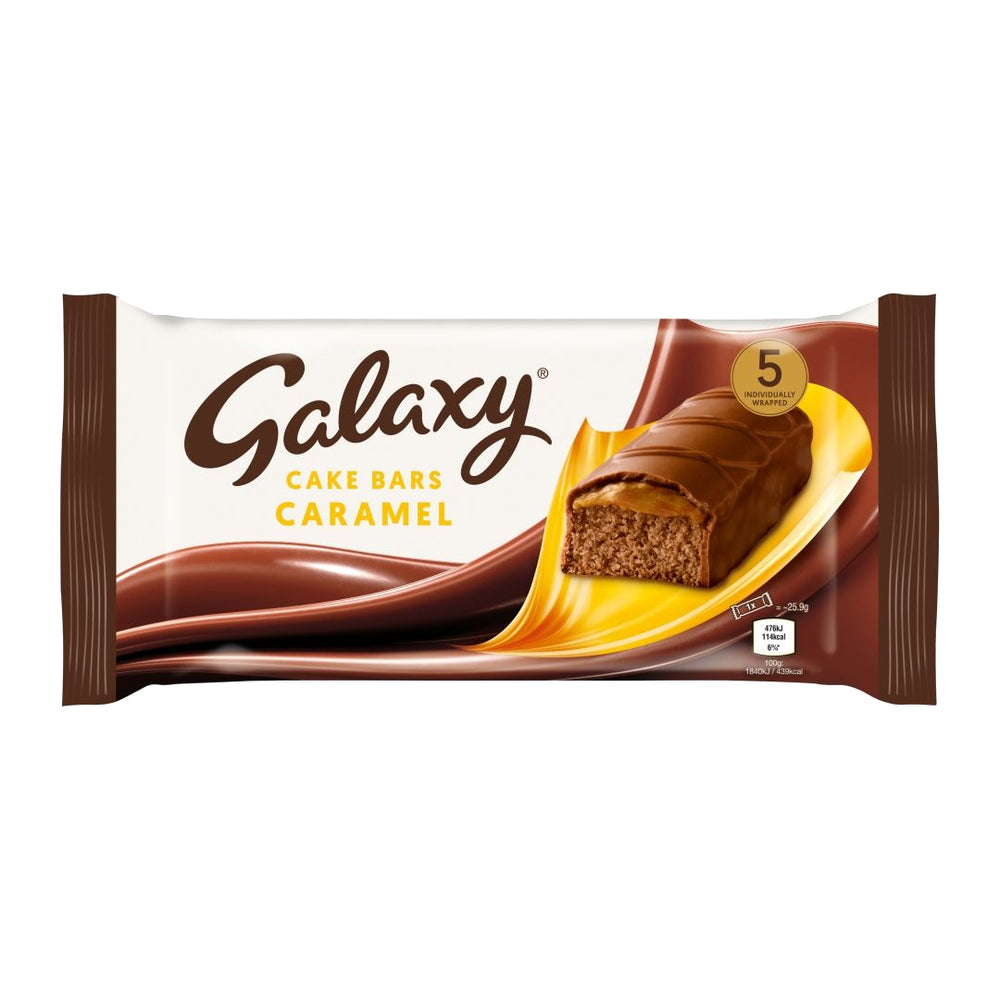 Galaxy cake bars combine a soft sponge with a smooth caramel centre, covered in Galaxy milk chocolate to create a mind-blowing treat! 5 individually wrapped cake bars, perfect for sharing. Product origin: UK