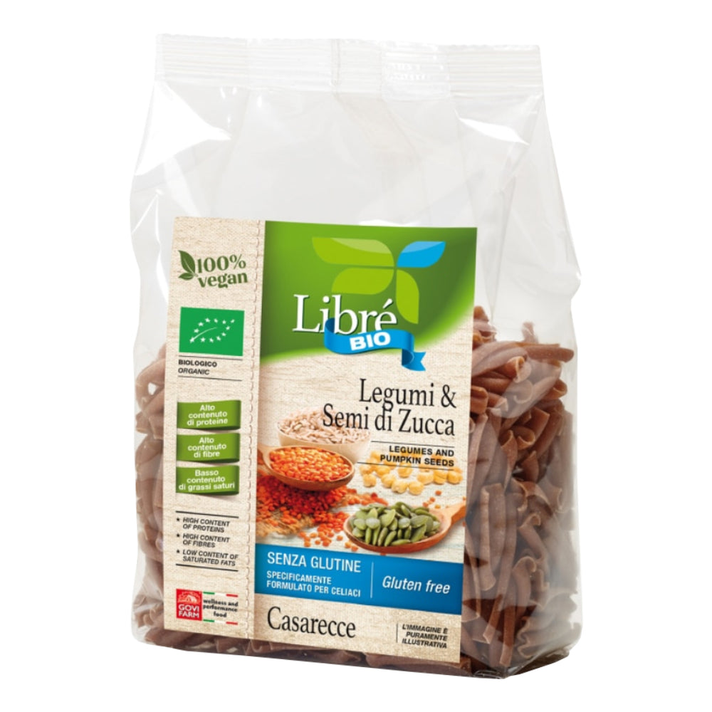 Libré Bio Legumes, Rice, and Toasted Pumpkin Seeds Casarecce 250G Experience the perfect blend of nutrition and flavor with Libré Bio Casarecce Legumes, Rice, and Toasted Pumpkin Seeds. This homemade-style pasta is crafted with organic legumes and pumpkin seeds, offering a wholesome choice for health-conscious individuals. With high fiber and protein content and low saturated fat, it is a delightful addition to balanced meals. Key Features: - Organic Ingredients: A nourishing mix of organic legumes, rice, and toasted pumpkin seeds. - High in Fiber & Protein: Supports a healthy lifestyle with every bite. - Low Saturated Fat: A guilt-free option for pasta lovers. - Natural & Wholesome: Retains the authentic homemade pasta taste. - Quick & Easy to Cook: Perfect for busy days when you need a nutritious meal fast. Cooking Instructions: - Bring a large pot of water to a rolling boil and add coarse salt. - Add the Casarecce pasta and reduce the heat once the water starts boiling again. - Cook for 5–6 minutes, stirring occasionally. Foam during cooking indicates the naturalness of the product; skim off any excess foam with a spoon. - Taste the pasta to check your preferred texture, then drain and season as...