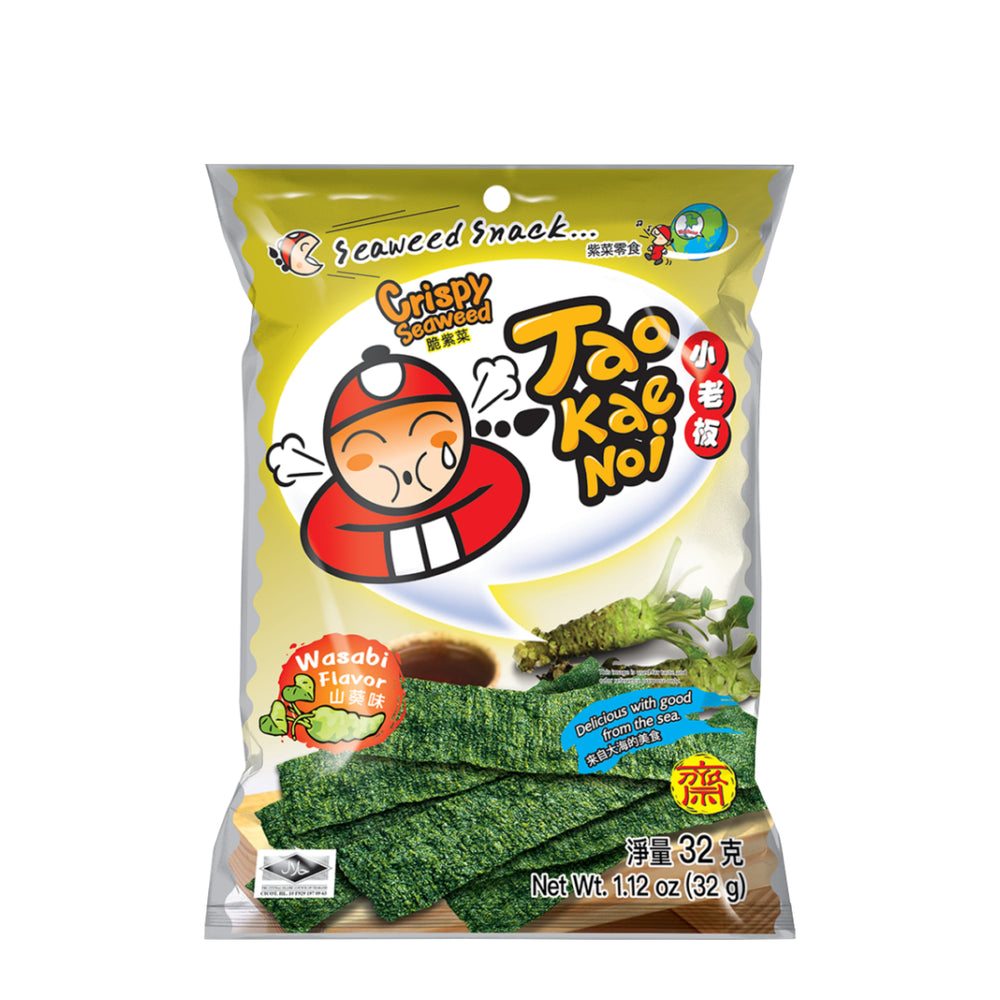 Tao Kae Noi Hot & Spicy Flavoured Crispy Seaweed Snack is a delicious and fiery treat that combines the intense heat of spices with the crunchiness of seaweed. This 32g snack pack is perfect for on-the-go snacking or as a tasty addition to any meal. The crispy texture of the seaweed is perfectly complemented by the bold and spicy flavour, creating a satisfying and addictive snack experience. Whether you're a seaweed lover or simply looking for a new and exciting snack, the Tao Kae Noi Hot & Spicy Flavoured Crispy Seaweed Snack is a must-try. Product origin: Thailand