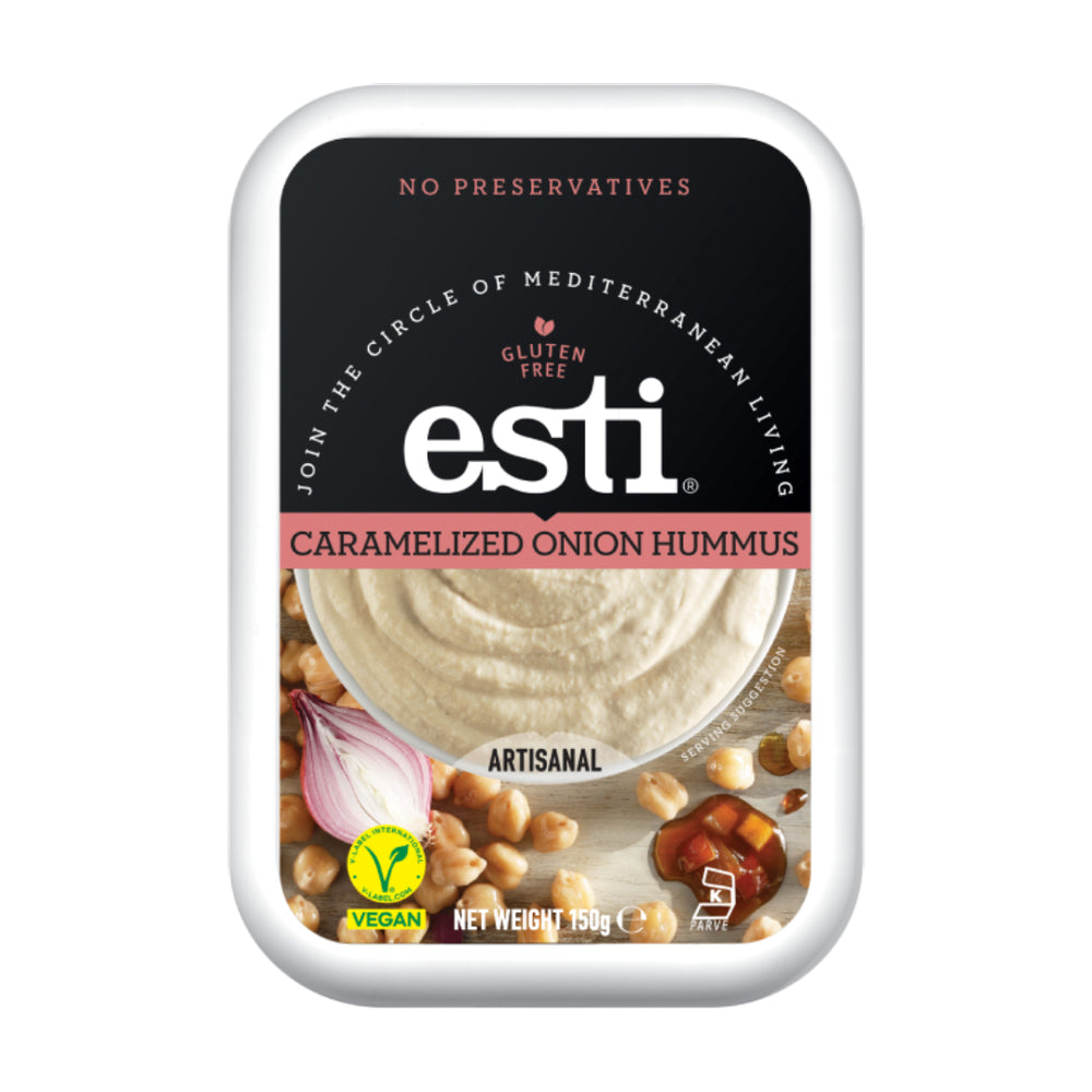 Authentic Greek recipe, made with pure Mediterranean ingredients, that combine proteins, vitamins, & antioxidants without any preservatives or chemicals. esti Caramelized Onion Hummus is made with 100% Greek chickpeas and well-sautéed caramelized onions from Peloponnese, Greece to add a sweet twist to the original hummus recipe. It is rich in plant proteins and edible fiber. Balanced Flavors inspired by the Mediterranean diet. Product origin: Greece