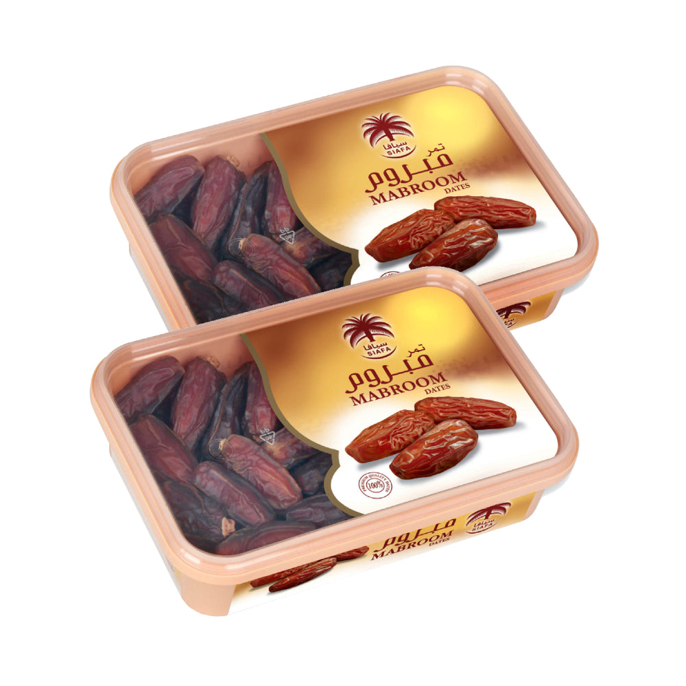 Mabroom Dates – Saudi Arabia – Pack of 2 x 400g Get twice the goodness with this twin-pack of Mabroom Dates from Saudi Arabia. Carefully hand-selected for their premium quality, these dates offer a deliciously rich taste and smooth texture. Packed with fiber, they’re a nutritious snack or gift option, sealed to preserve their natural freshness. Key Features: - 2 x 400g packs of handpicked Mabroom dates - Origin: Saudi Arabia – premium quality selection - Rich in fiber for digestive and energy support - Naturally sweet and satisfying snack - Ideal for bulk use, gifting, or storage