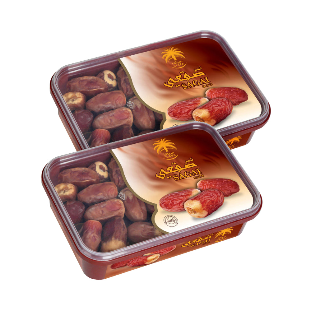 Sagai Dates – Saudi Arabia – Pack of 2 x 400g Enjoy twice the indulgence with this Pack of 2 Sagai Dates from Saudi Arabia. These premium dates feature a golden-brown dual tone and a delightful texture that is both soft and slightly crisp. Rich in fiber, antioxidants, and natural sweetness, Sagai dates are perfect for snacking, gifting, or serving with traditional Arabic coffee. Key Features: - 2 x 400g packs of Sagai dates from Saudi Arabia - Distinct golden-brown appearance with soft-crisp texture - Naturally sweet and free from additives - High in dietary fiber and antioxidants - Ideal for sharing, gifting, or daily enjoyment